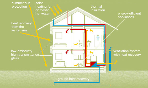 Envolvente super-aislada: grosor de aislamiento, triple acristalamiento, eliminación de puentes térmicos. Ej.: Fiorita.
