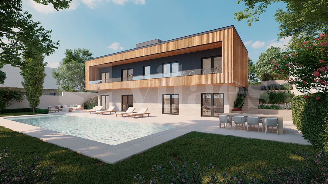 El modelo Terra de Vilaes es una casa industrializada y sostenible, concebida para integrarse en armonรญa con el entorno y ofrecer un estilo de vida saludable, confortable y eficiente. Su diseรฑo contemporรกneo, con materiales de alta calidad y lรญneas sobrias, refleja una apuesta por la funcionalidad sin renunciar a la estรฉtica.